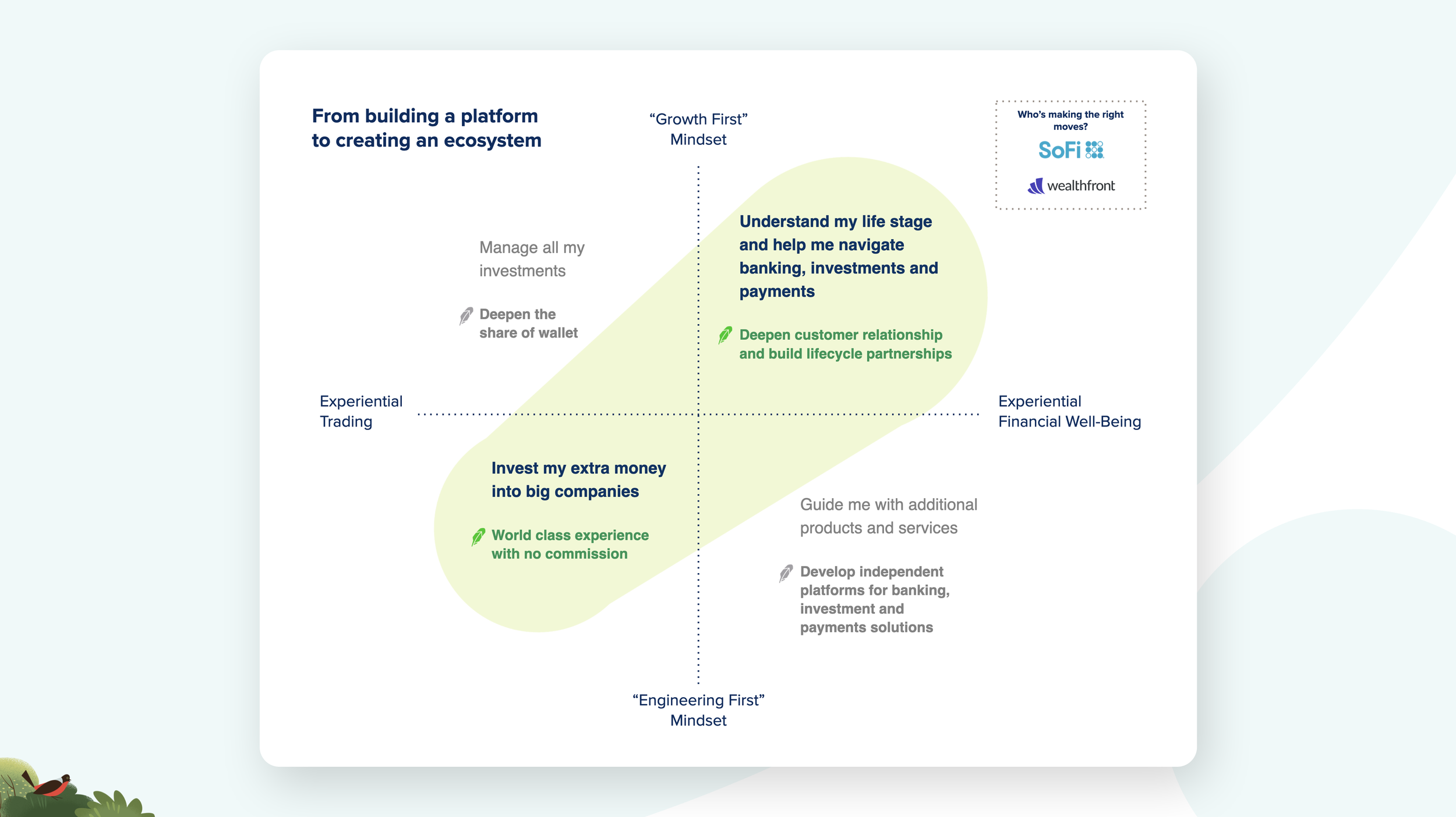 Successful peers include SoFi and Wealthfront, and their products that address different customer needs.